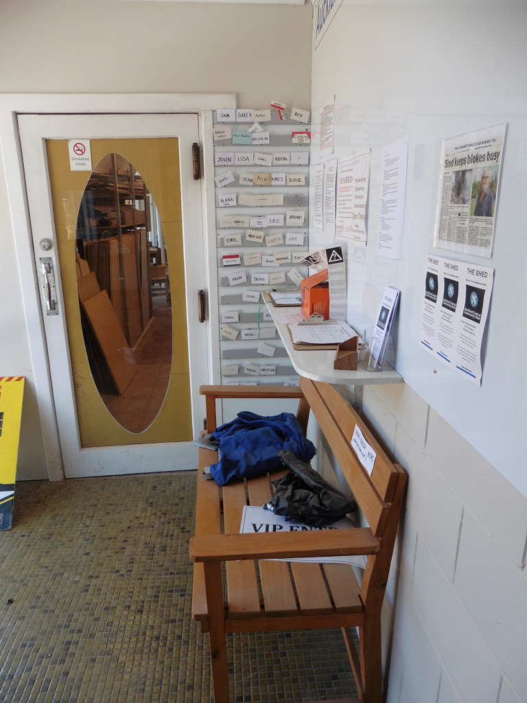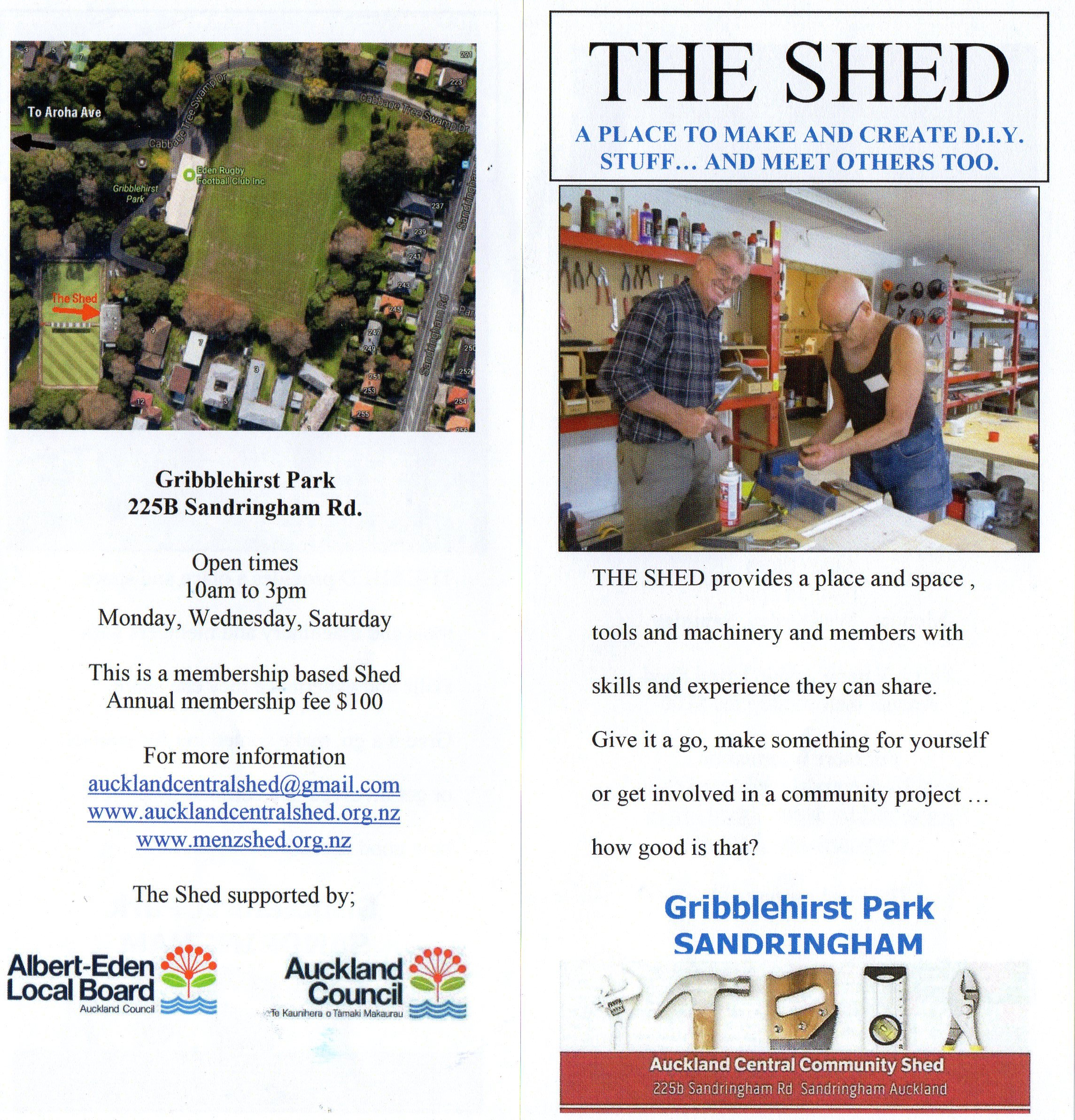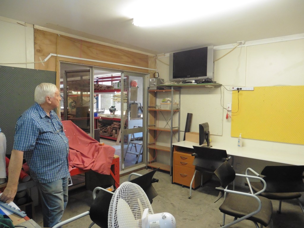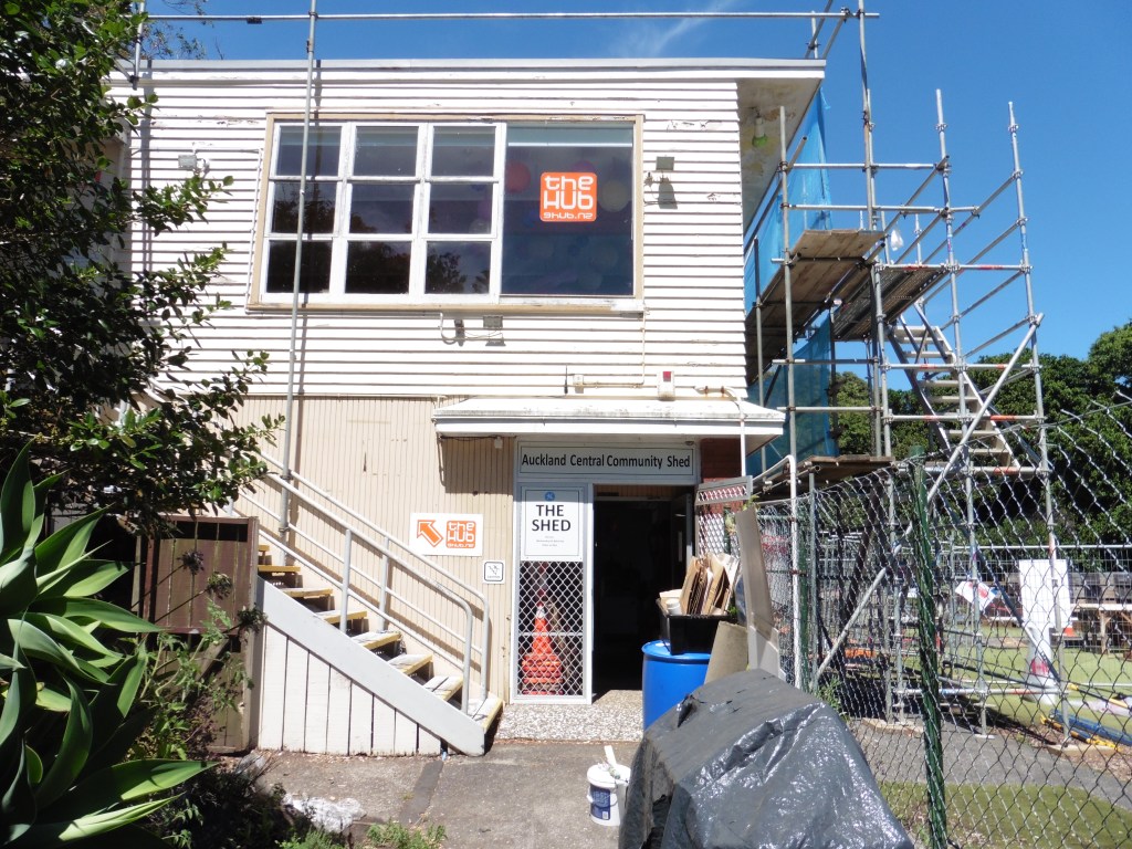 Exterior view of the Auckland Shed.The Shed Main Entrance, and scaffolding.New Meeting RoomView of Main Woodworking ShopStore Room and AC UnitRacks in Main Woodworking ShopGeneral ProductsSigning In. Name Badges in the RackMess and Meeting AreaA well organised kitchen area – separate from the WorkshopsMachine and Metalwork ShopThe Shed Leaflet